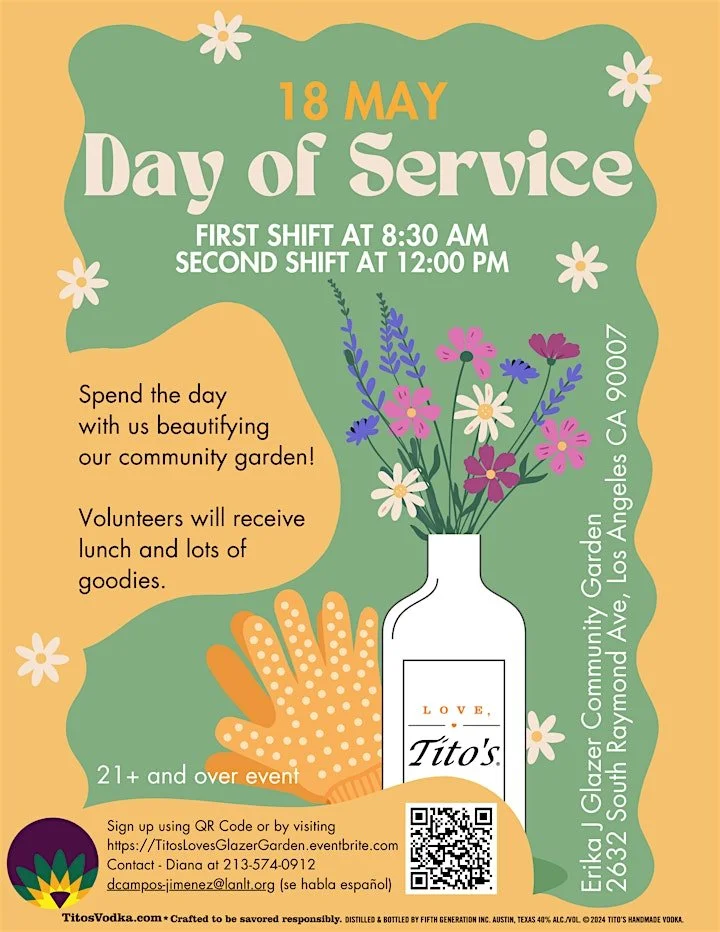 We are proud to be the recipients of Tito's Block2Block grant! We will host the LOVE Tito's team and community volunteers to help beautify the Erika J. Glazer Garden. This is a 21 years and over event. Volunteer tasks will include;