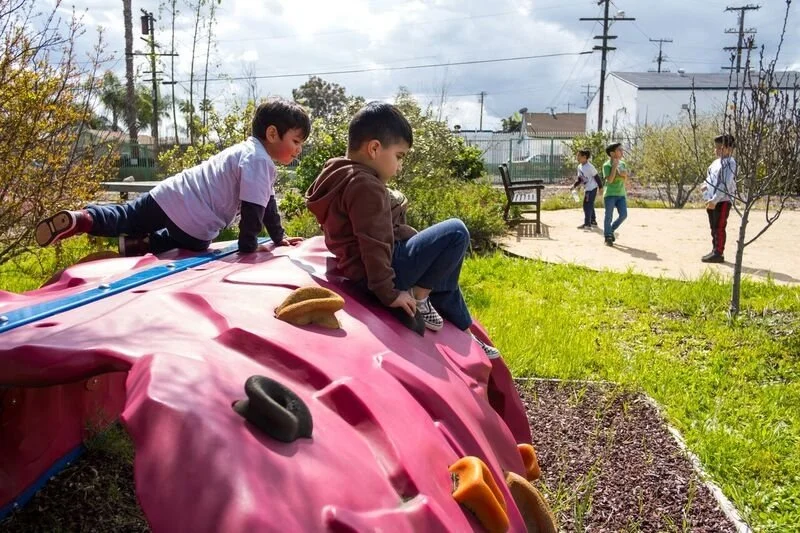 Phase II of the project involved the installation of a bioswale to catch runoff and allow water to be filtered back into the ground. It also included the addition of 25 trees that provide needed shade in the spring and summer months, reduce heat and GHG emissions, and serve as an urban food forest/fruit orchard.
